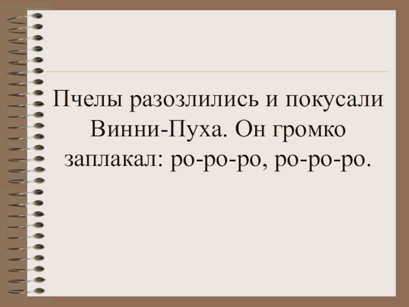 Слайд 7Пчелы разозлились и покусали Винни-Пуха. Он громко заплакал: ро-ро-ро, ро-ро-ро.