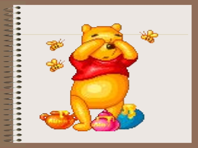 Слайд 9Пчелам стало жаль Винни-Пуха и они угостили его медом. Медвежонок обрадовался