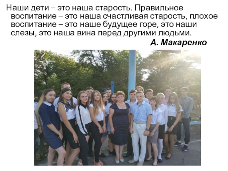 наша счастливая старость, плохое воспитание – это наше будущее горе, это наши слезы, это наша вина перед другими людьми.