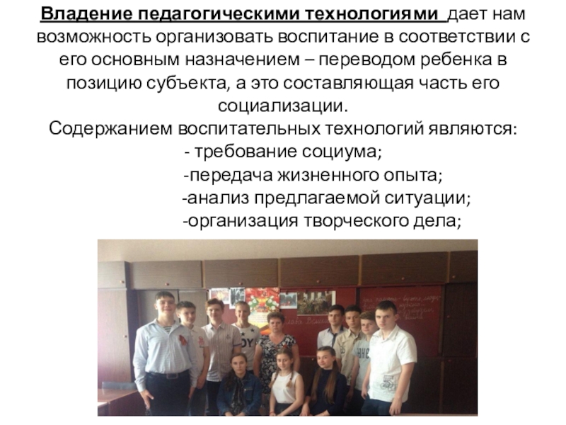 Владение педагогическими технологиями дает нам возможность организовать воспитание в соответствии с