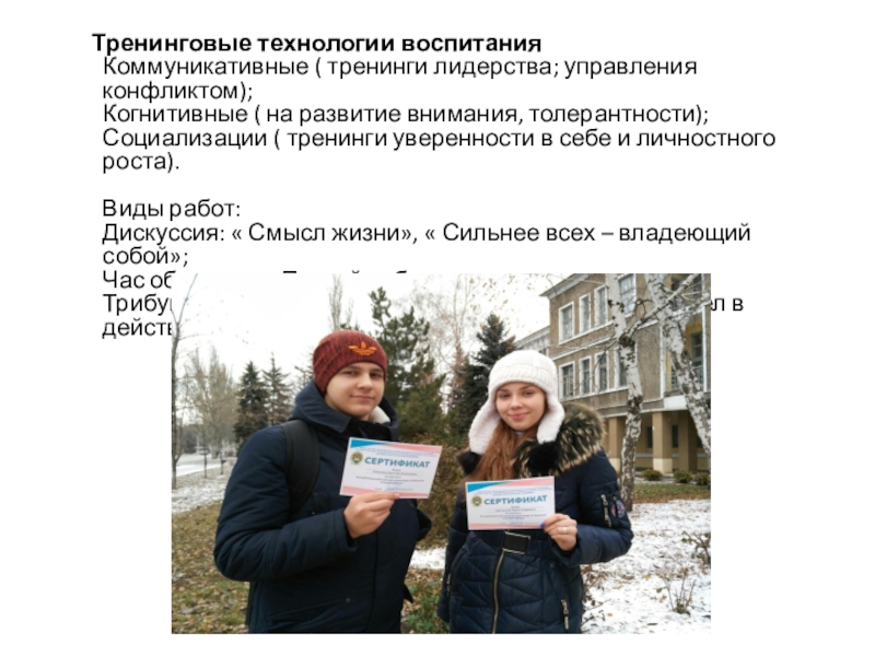 Социализации ( тренинги уверенности в себе и личностного роста).