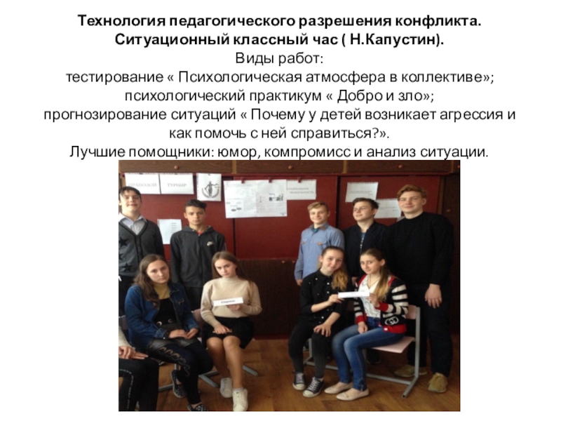 Слайд 10Технология педагогического разрешения конфликта. Ситуационный классный час ( Н.Капустин).