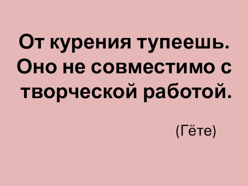 Слайд 2От курения тупеешь. Оно не совместимо с творческой работой.