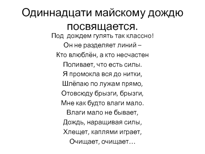Слайд 9Одиннадцати майскому дождю посвящается.