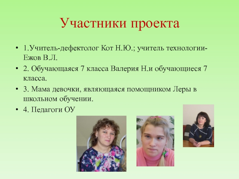 1.Учитель-дефектолог Кот Н.Ю.; учитель технологии-Ежов В.Л.