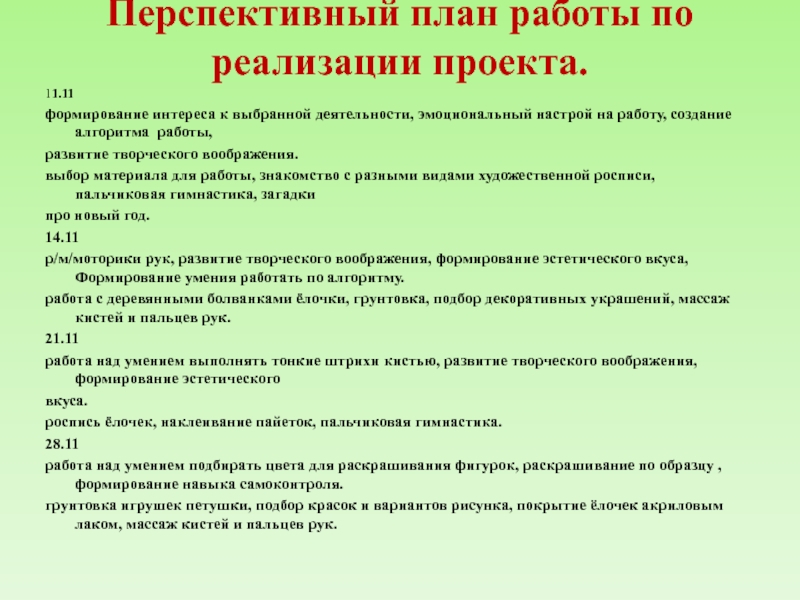 работа с деревянными болванками ёлочки, грунтовка, подбор декоративных украшений, массаж кистей и пальцев рук.