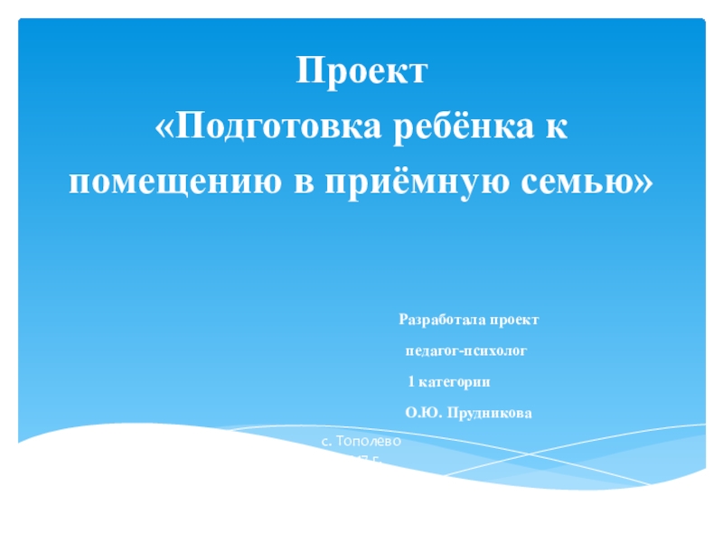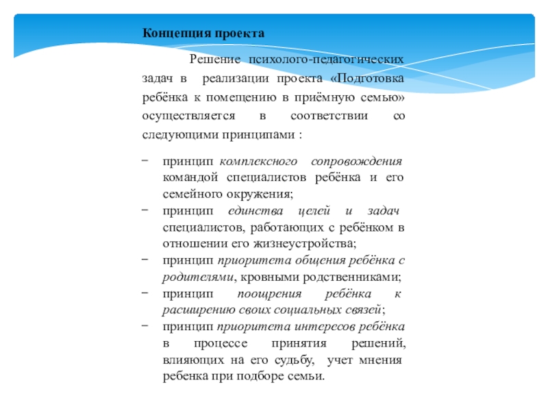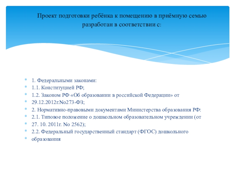 Проект подготовки ребёнка к помещению в приёмную семью разработан в соответствии с: