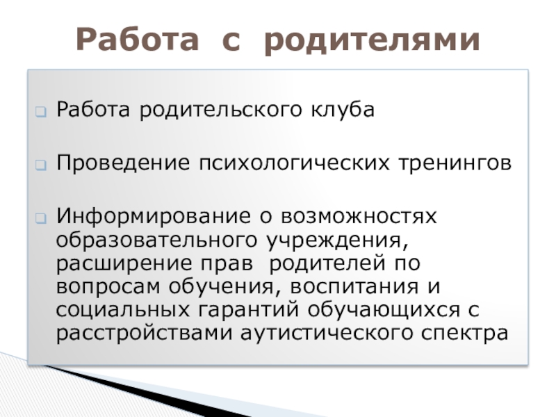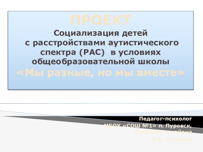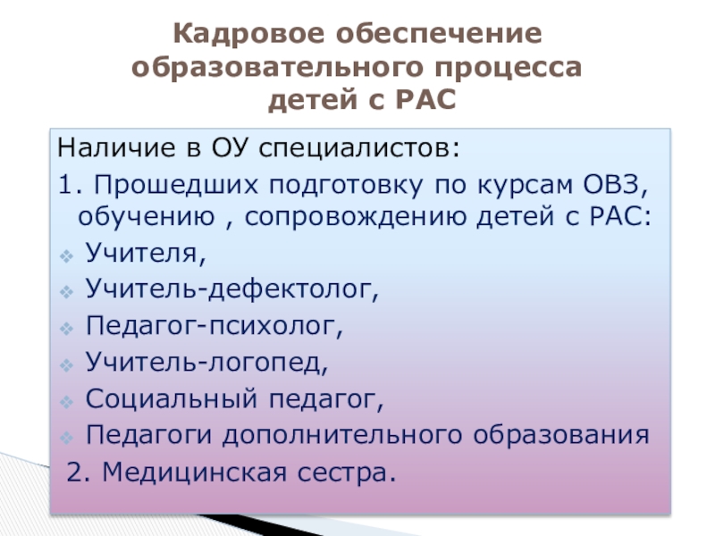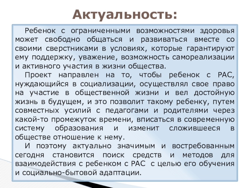 обеспечить детей с РАС необходимым комплексом мероприятий для получения ими индивидуального уровня образования, соответствующего психофизиологическим особенностям обучающихся;