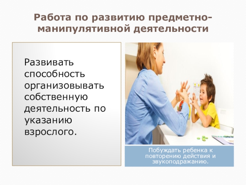 Развивать способность организовывать собственную деятельность по указанию взрослого.
