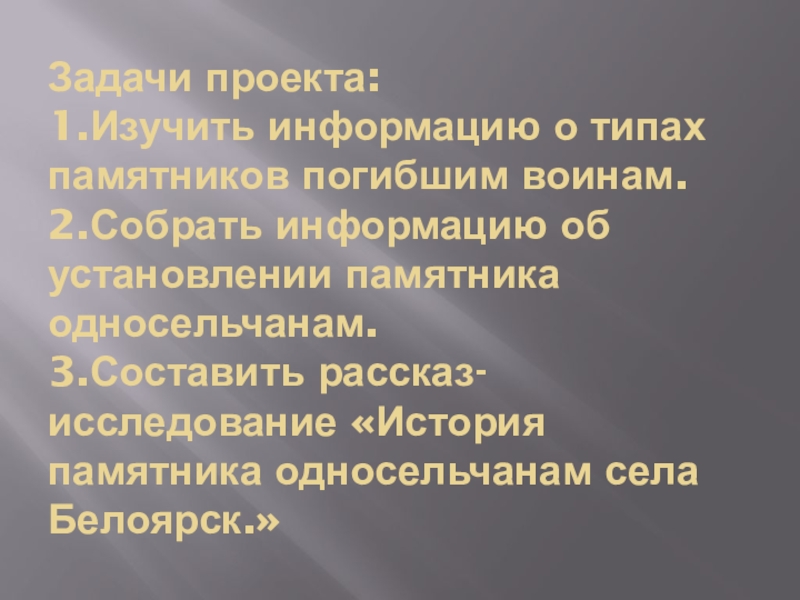 Это сайт презентаций, где можно хранить и обмениваться своими презентациями, докладами, проектами, шаблонами в формате PowerPoint с другими пользователями. Мы помогаем школьникам, студентам, учителям, преподавателям хранить и обмениваться учебными материалами.