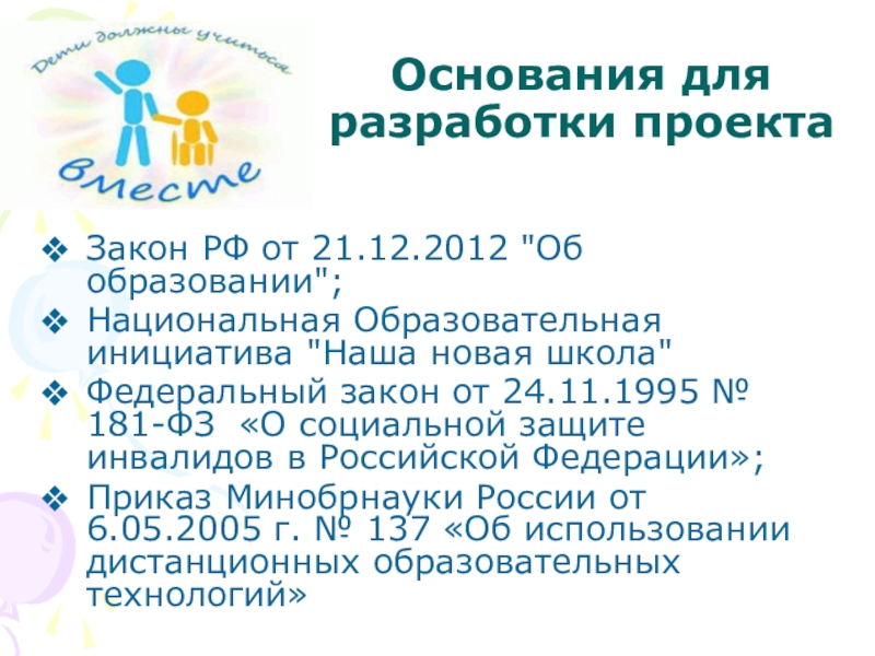 организация дистанционного обучения детей-инвалидов, не посещающих по состоянию здоровья образовательное учреждение;