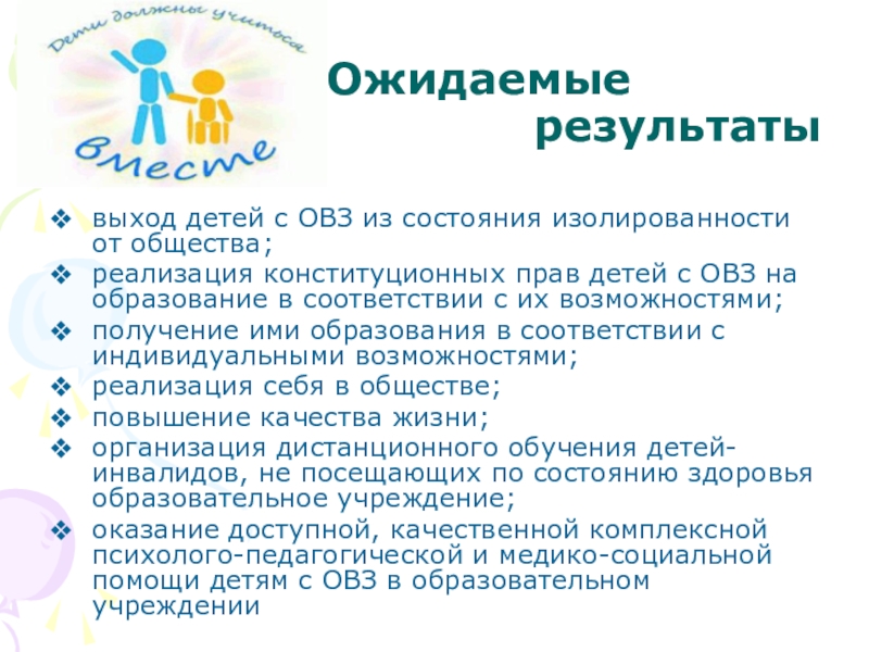 реализация конституционных прав детей с ОВЗ на образование в соответствии с их возможностями;