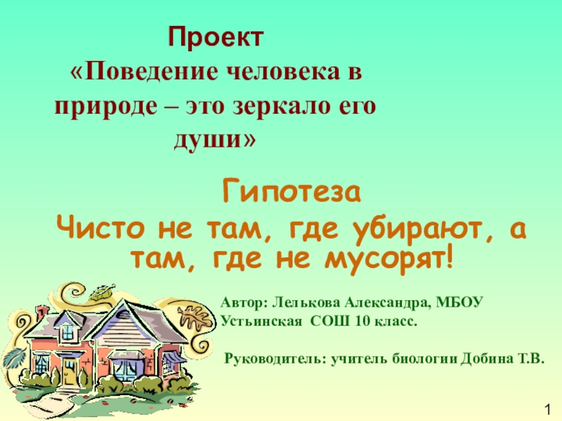 Автор: Лелькова Александра, МБОУ Устьинская СОШ 10 класс.
