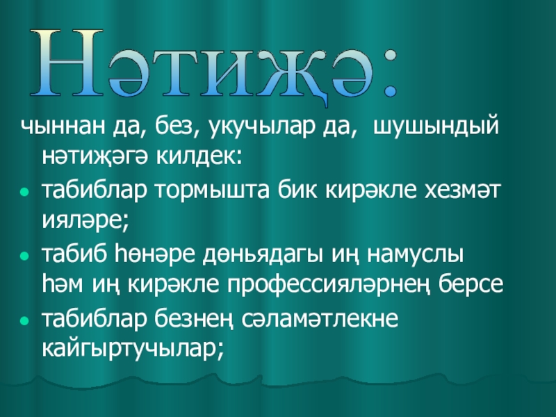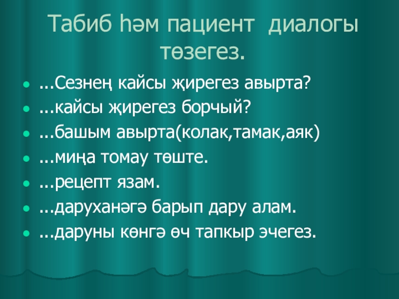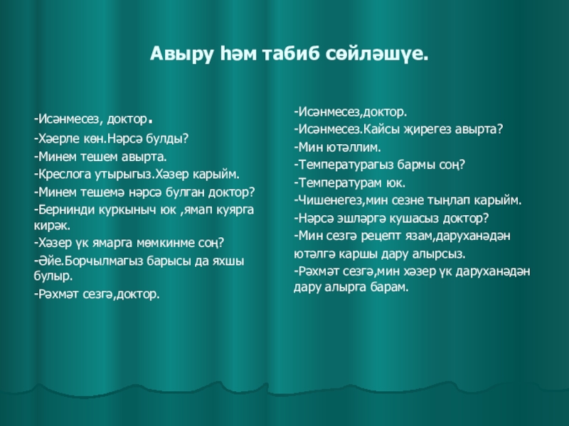 -Рәхмәт сезгә,мин хәзер үк даруханәдән дару алырга барам.