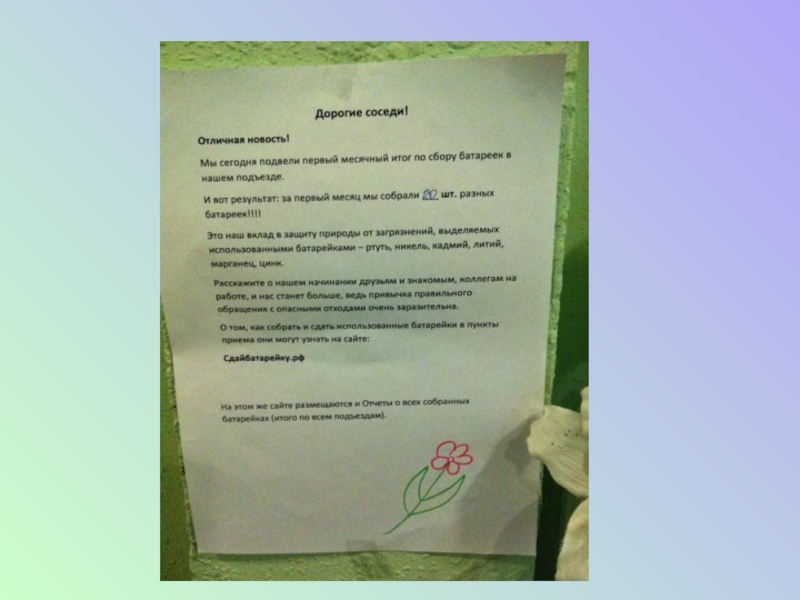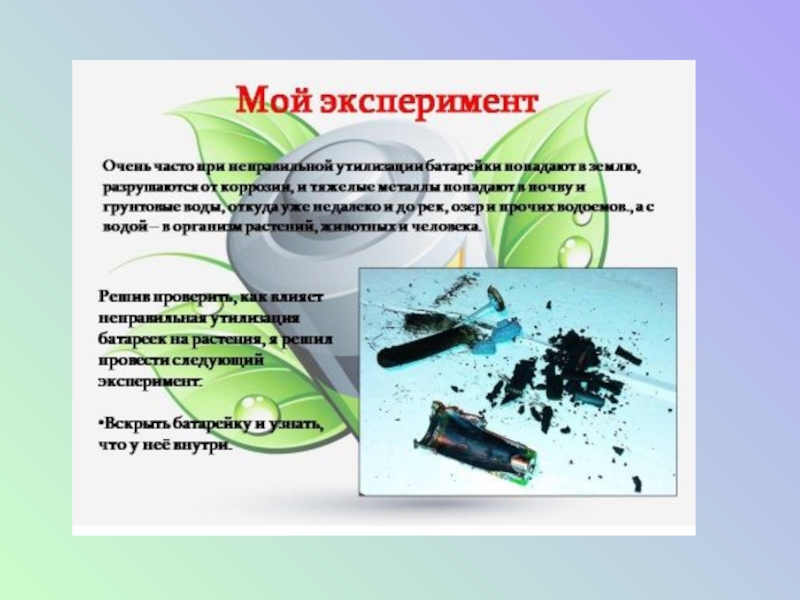 Презентация, доклад проекта Утилизация батареек