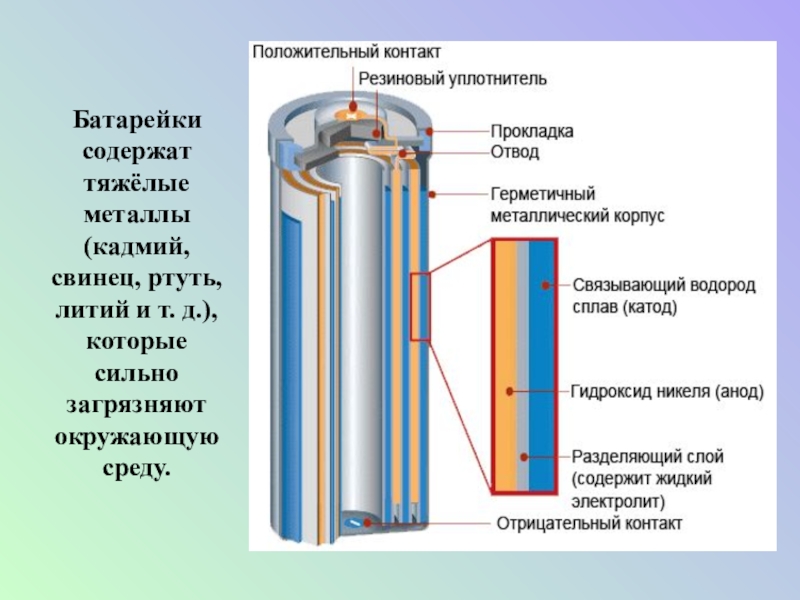 Слайд 18Чем опасны тяжелые металлы, находящиеся в батарейках?