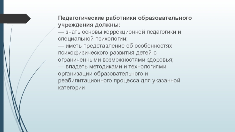 Слайд 22Педагогические работники образовательного учреждения должны: