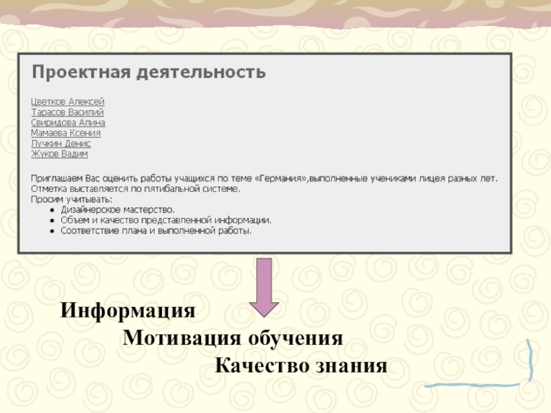 Это сайт презентаций, где можно хранить и обмениваться своими презентациями, докладами, проектами, шаблонами в формате PowerPoint с другими пользователями. Мы помогаем школьникам, студентам, учителям, преподавателям хранить и обмениваться учебными материалами.