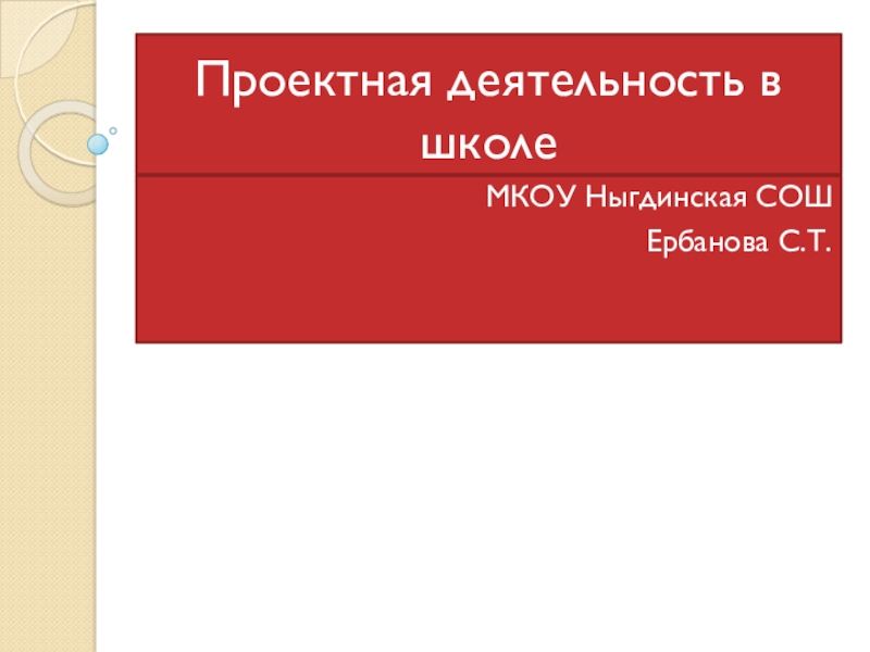 Проектная деятельность в школеМКОУ Ныгдинская СОШЕрбанова С.Т.