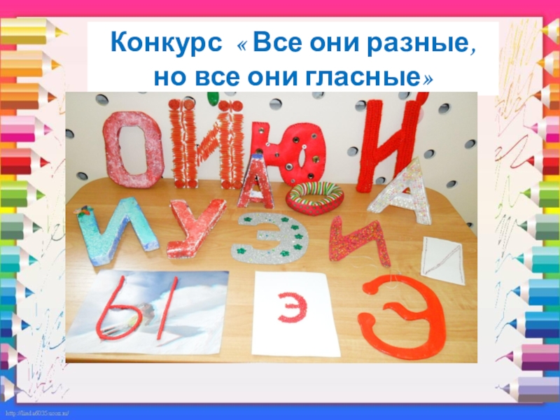 Участие родителей в изготовлении гласных букв к конкурсу.