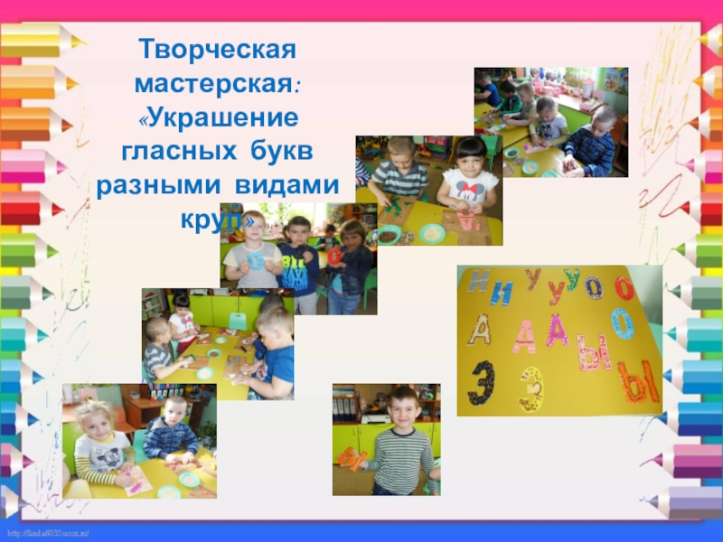 Творческая мастерская: «Украшение гласных букв разными видами круп»