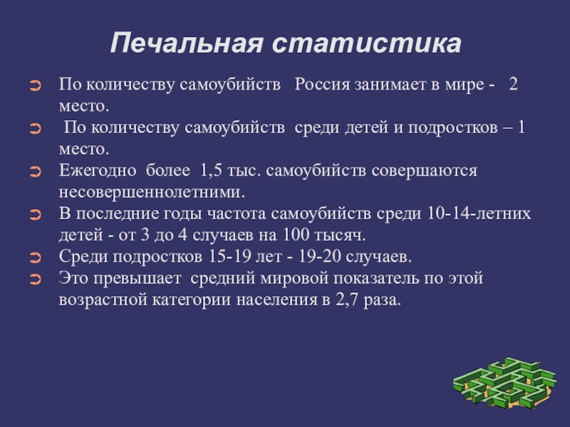По количеству самоубийств Россия занимает в мире -
