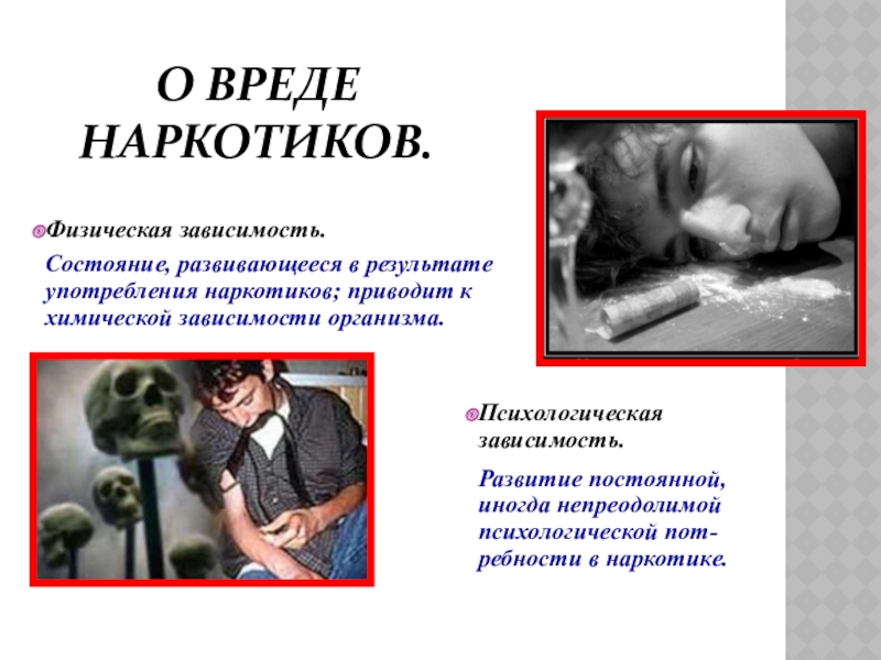 Развитие постоянной, иногда непреодолимой психологической пот-ребности в наркотике.