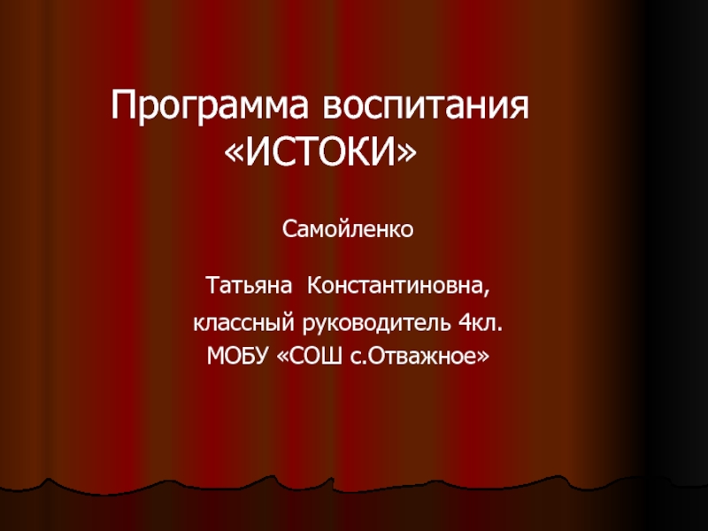 СамойленкоТатьяна Константиновна, классный руководитель 4кл. МОБУ «СОШ с.Отважное»Программа воспитания «ИСТОКИ»