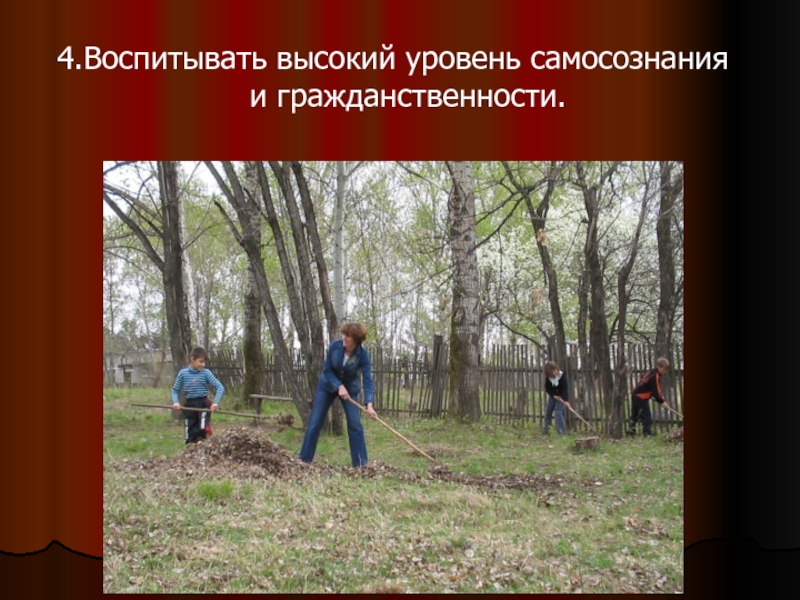 4.Воспитывать высокий уровень самосознания и гражданственности.