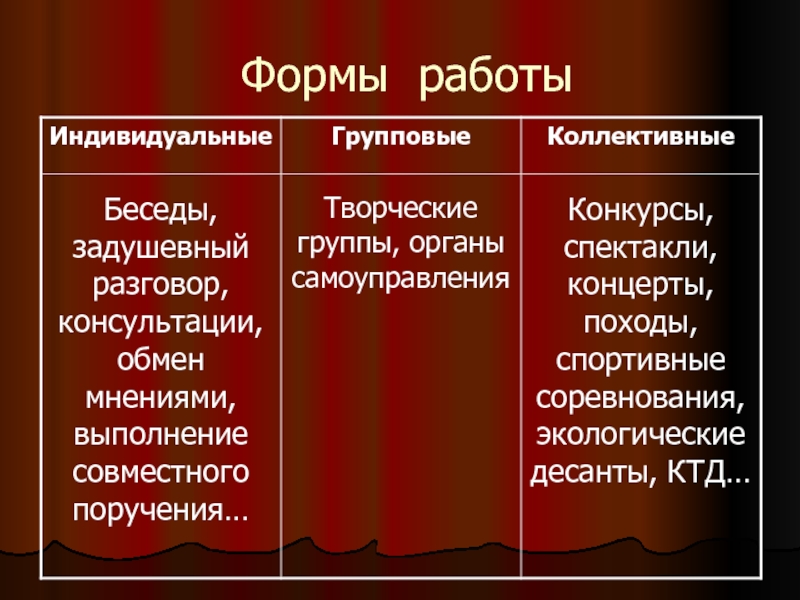 Формы работы