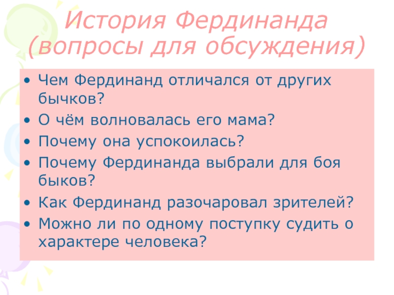 Слайд 50История Фердинанда (вопросы для обсуждения)