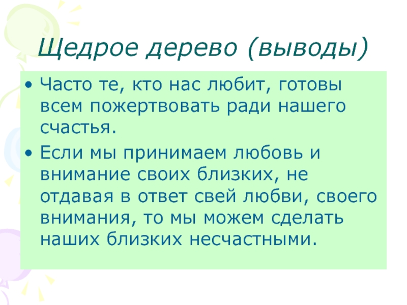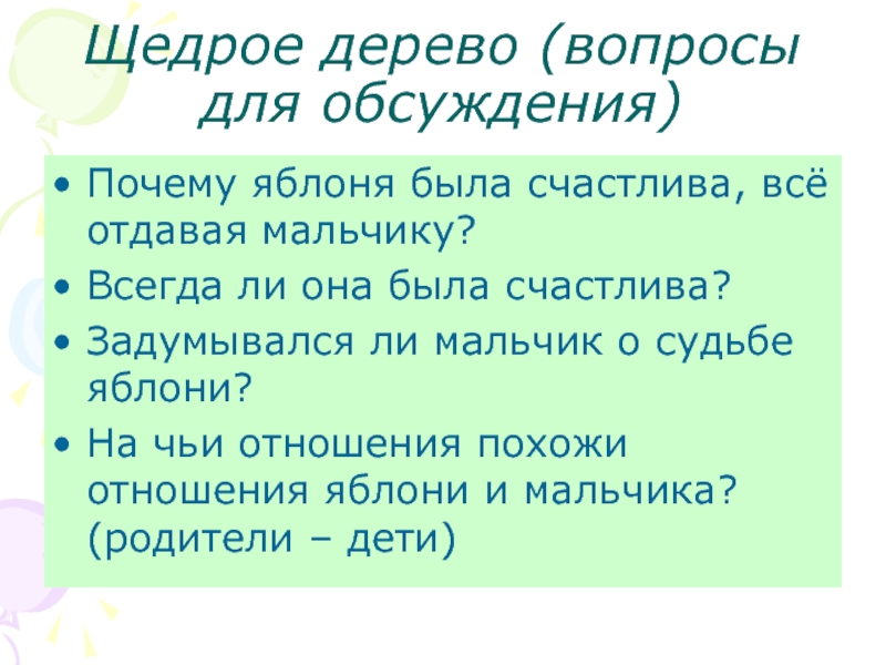 Слайд 19Щедрое дерево (вопросы для обсуждения)