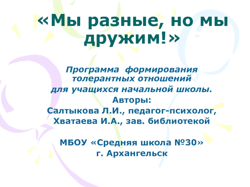 Ивановной и библиотекарем Хватаевой Ириной Александровной на базе 2а класса была апробирована программа «Мы разные, но мы дружим».