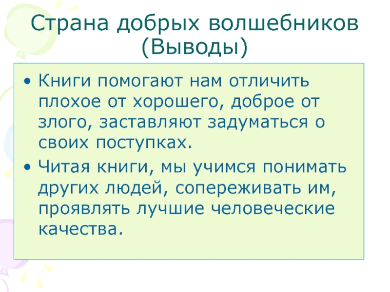 Читая книги, мы учимся понимать других людей, сопереживать им, проявлять лучшие человеческие качества.