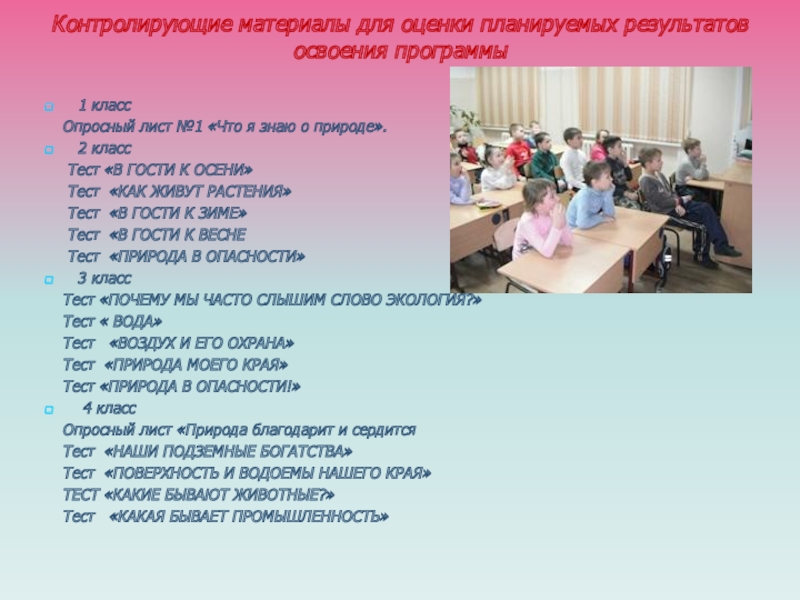 Слайд 13Контролирующие материалы для оценки планируемых результатов освоения программы