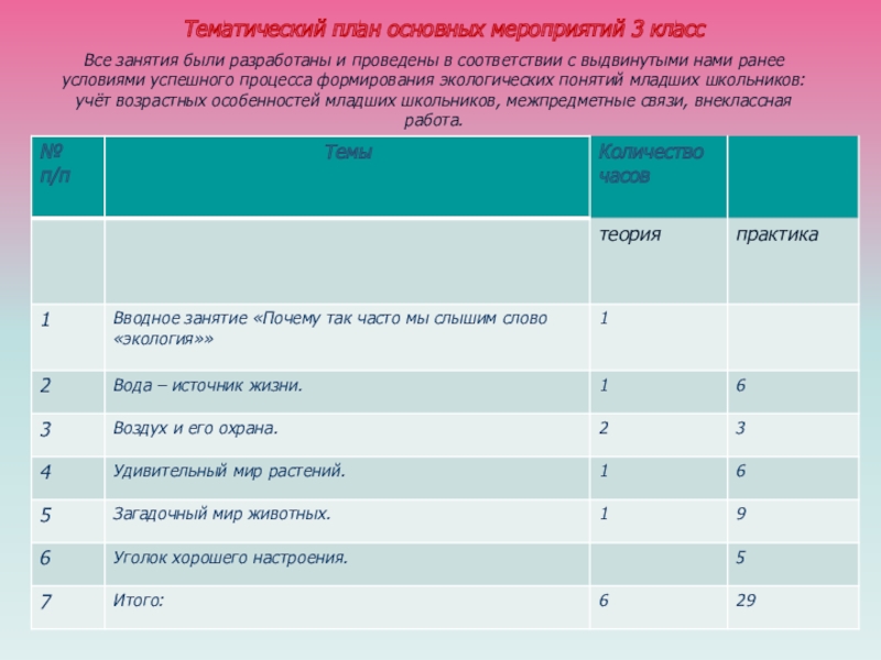 Слайд 16 Тематический план основных мероприятий 3 класс