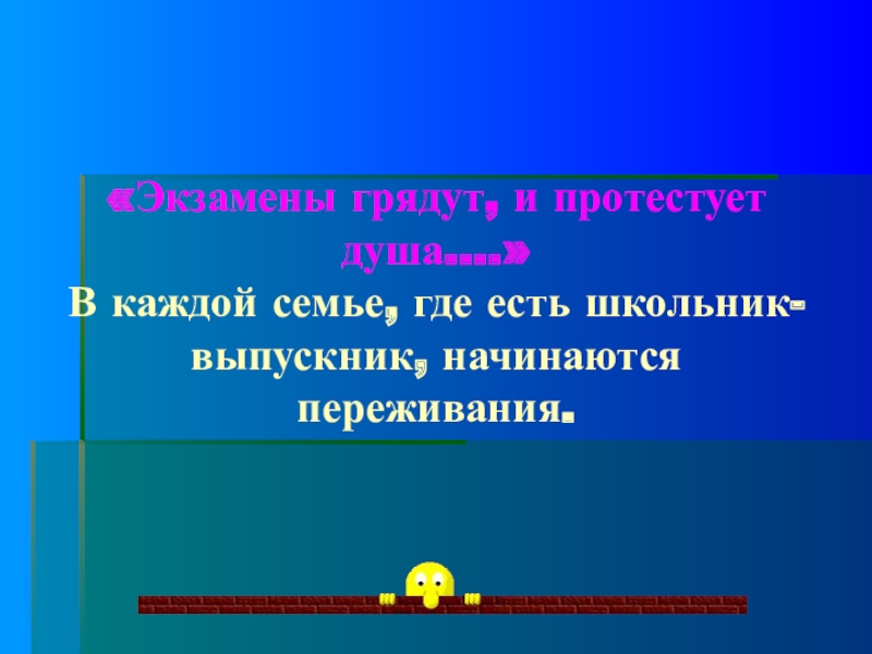 Слайд 2«Экзамены грядут, и протестует душа….»