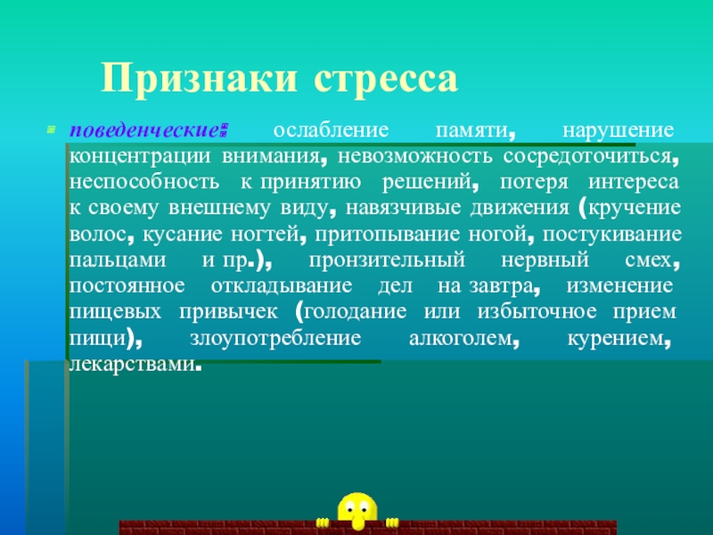 Слайд 9 Признаки стресса