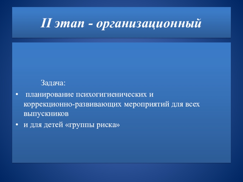 Слайд 6II этап - организационный