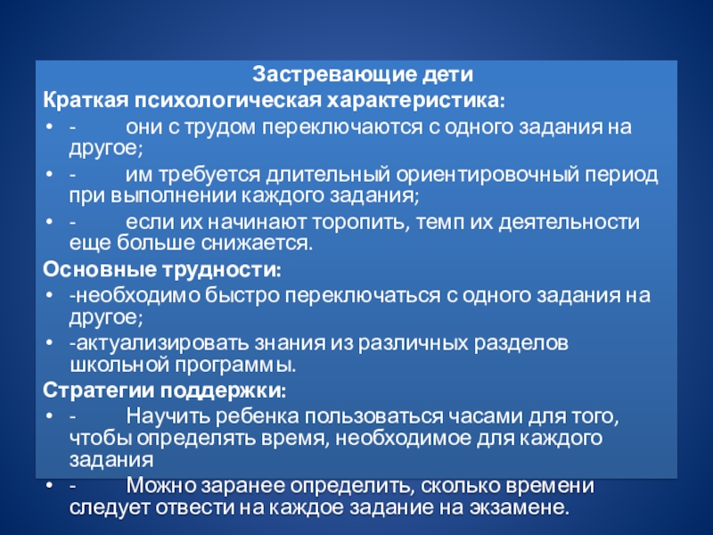 - они с трудом переключаются с одного задания на другое;