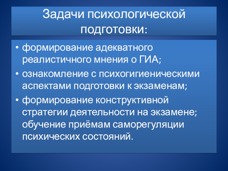 Слайд 3Задачи психологической подготовки: