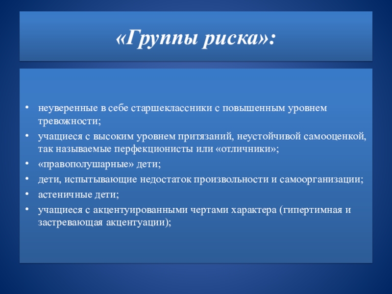 Слайд 10«Группы риска»: