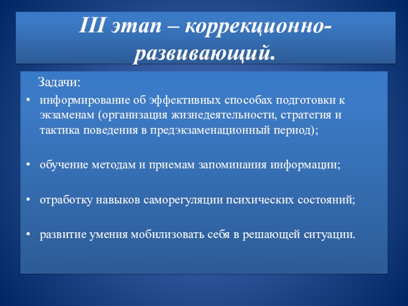 Слайд 8III этап – коррекционно-развивающий.
