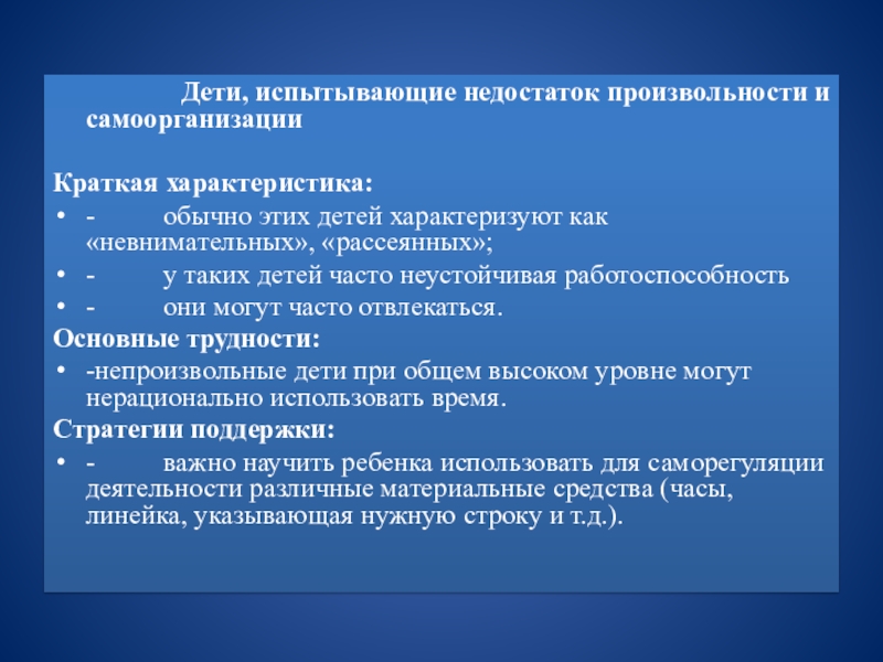 дети, испытывающие недостаток произвольности и самоорганизации;