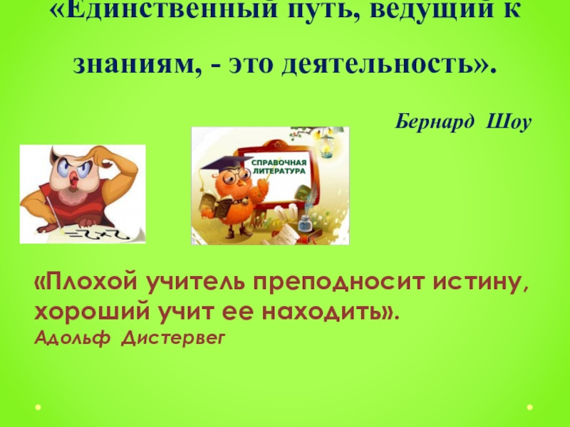 «Плохой учитель преподносит истину, хороший учит ее находить». Адольф Дистервег