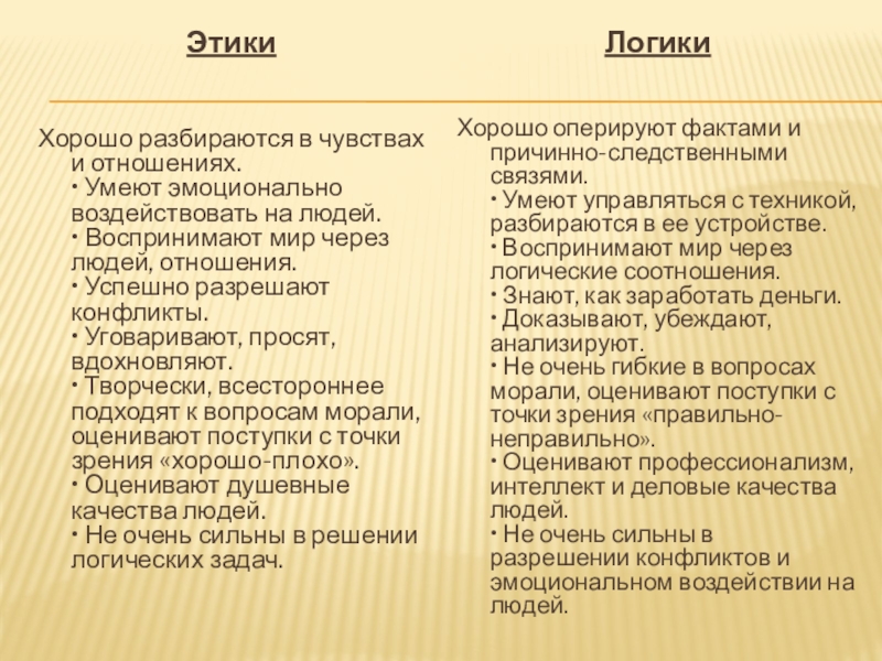 • Не очень сильны в разрешении конфликтов и эмоциональном воздействии на людей.