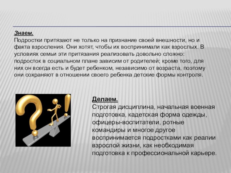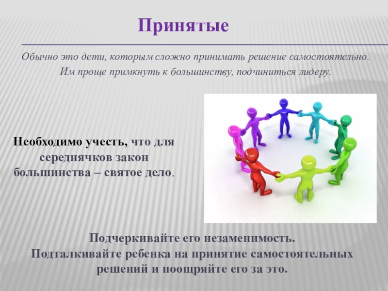 Чаще всего встают более общительные, стремящиеся к лидерству ребята. Те, кто встают позже, под конец игры, менее решительные. Есть и такие, которые сначала встают, а затем садятся. Они составляют группу «счастливых». Безынициативной является та группа отряда, которая не встаёт вообще.