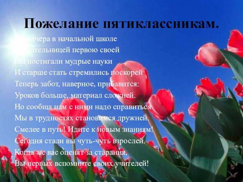 Слайд 22Пожелание пятиклассникам.