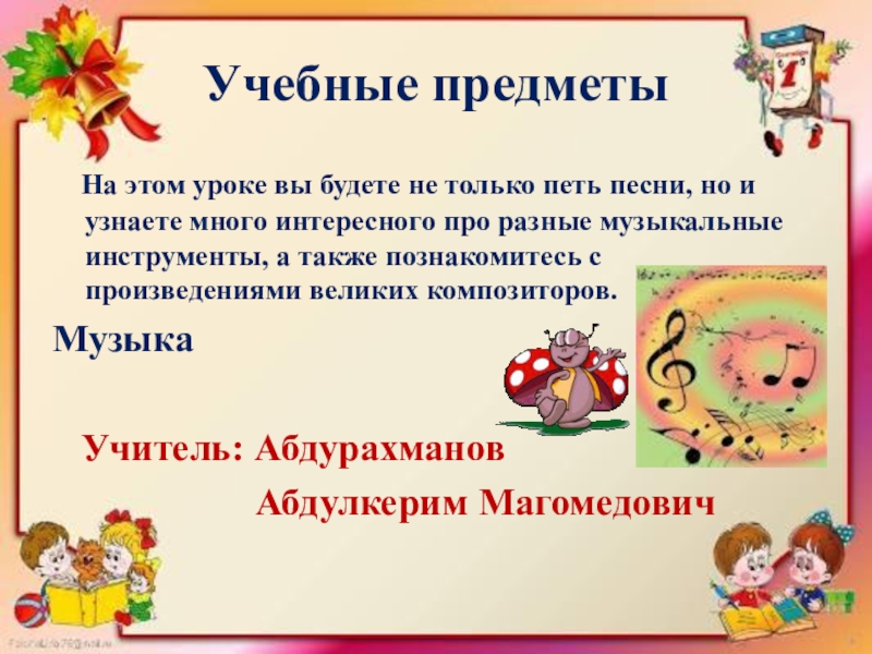 Учебные предметы  На этом уроке вы будете не только петь песни, но и узнаете много интересного