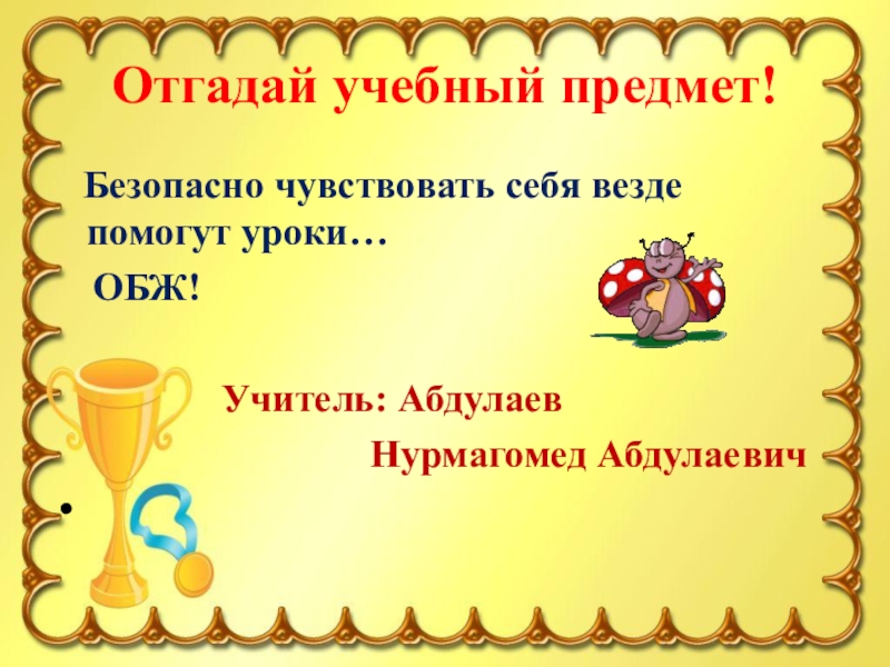 Отгадай учебный предмет!  Безопасно чувствовать себя везде помогут уроки…  ОБЖ!